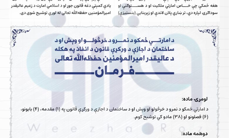 تصویب و توشیح قانون اجازه، فروش و اجاره املاک توسط ذعیم امارت اسلامی افغانستان