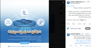 ۱- ریاست پاسپورت اطلاعیه و یا اعلامیه نشر نکرده است صرف در یک پست صفحه ایکس اصول را که از قبل رایج بوده است یادآوری نموده.