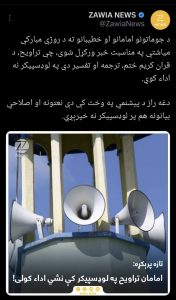 زاویه نیوز اخیراً گزارشی منتشر کرده بود که براساس آن، گویا به امامان و خطیبان مساجد هدایت داده شده تا در ماه رمضان، نماز تراویح، ختم قرآن، ترجمه و تفسیر را از بلندگوها پخش نکنند.